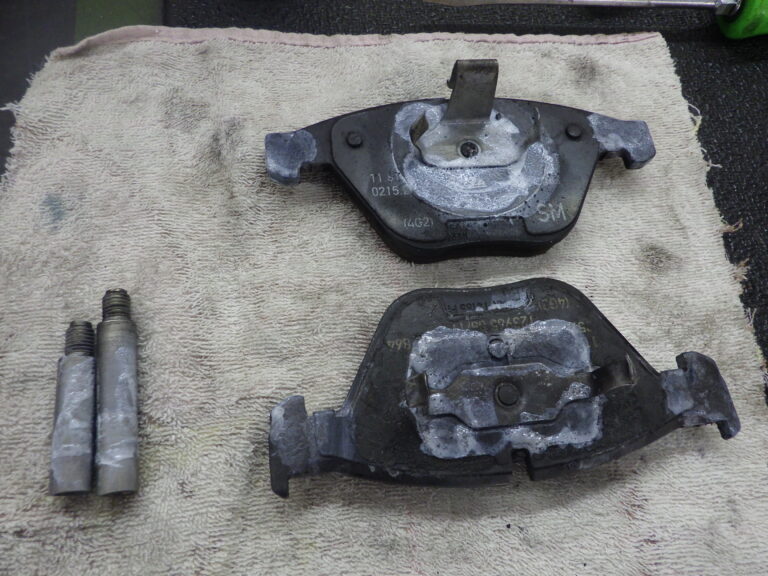 前後とも取り外して表面の洗浄と残量確認をしてグリスアップをして取り付けします。同時にキャリパーシールからの