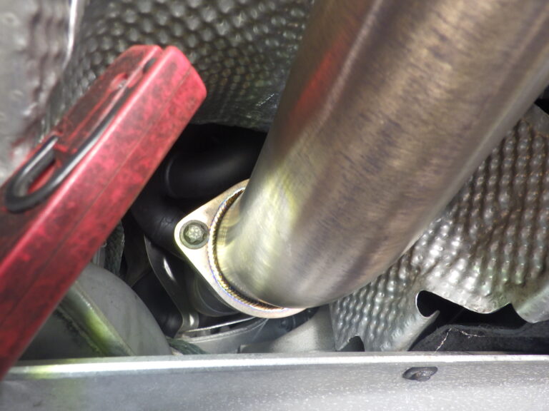 車両をリフトアップ時に脚関連の部品が社外品に変更されている場合は、取り付け部分の増し締めを行います
