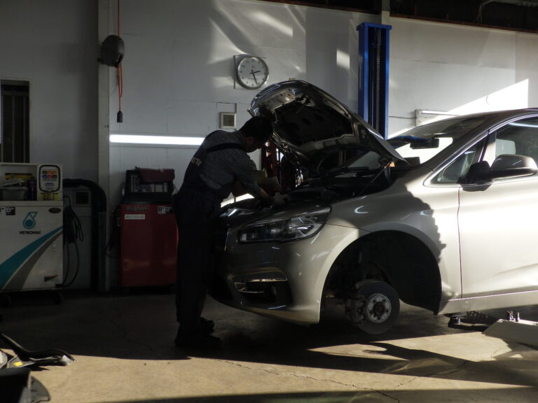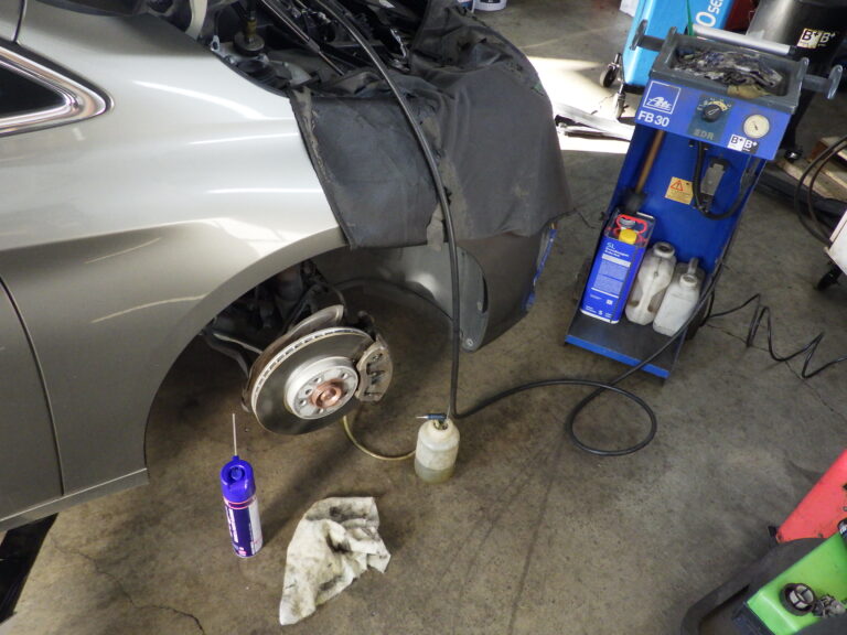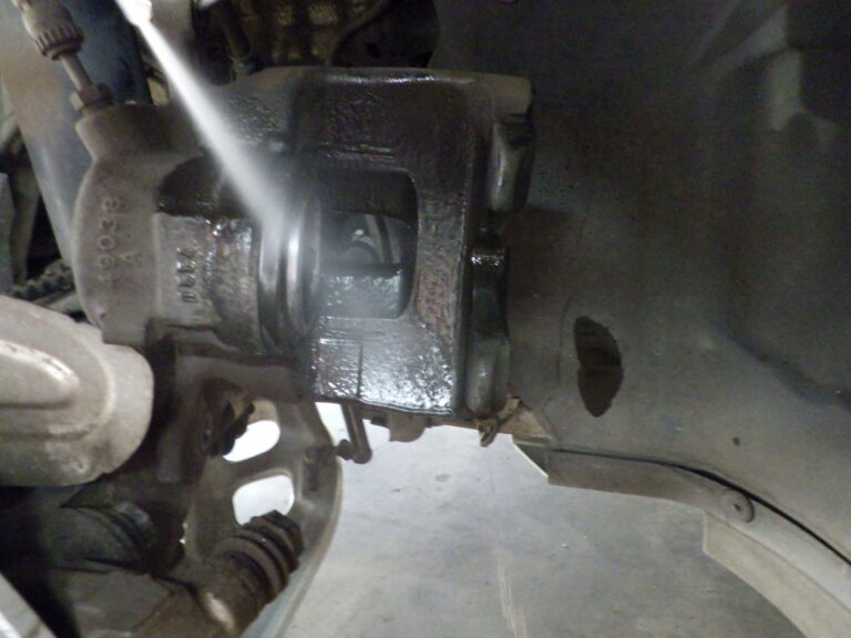 当店の車検整備においては、ブレーキキャリパーまわりの洗浄とブレーキパッドは、前後取り外して