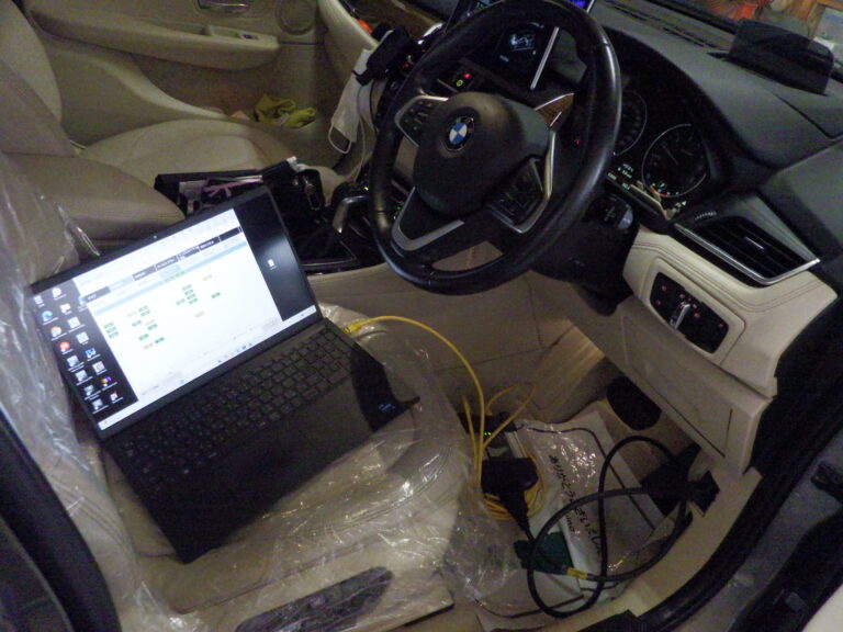 バッテリー診断を行いBMW専用テスターを車両に接続してコンピューター診断を行いエラーチェック