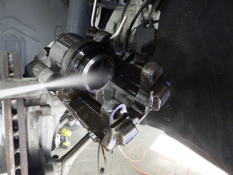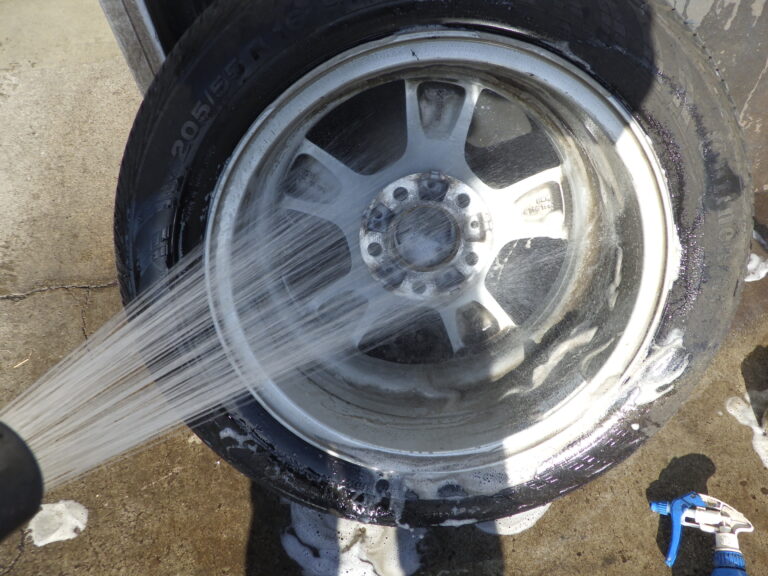 行いキャリパーまわりの洗浄とシールからのフルード滲みの点検、ハブ部分の錆取り防錆処理を行いホイールは、