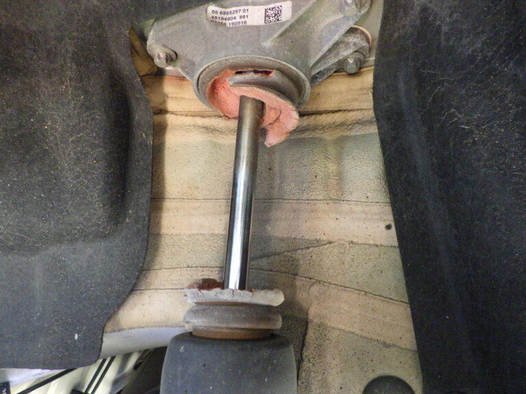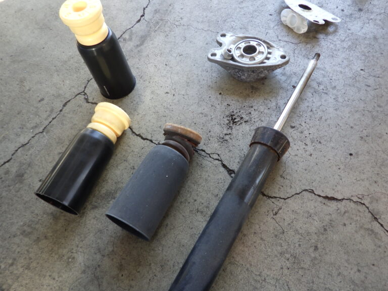 リアショックのバンプラバーが劣化で脱落していたのでリア左右を新品部品にて交換を行いました。