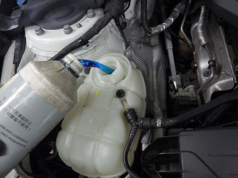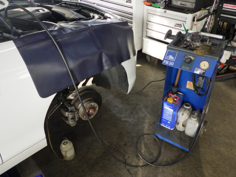 裏も表も綺麗に洗います。同時に車検毎に交換を推奨しておりますクーラントとブレーキフルードは、純正同等品使用にて