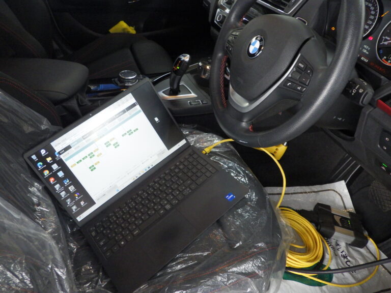 バッテリー診断を行いBMW専用テスターを車両に接続してコンピューター診断を行いエラーチェック
