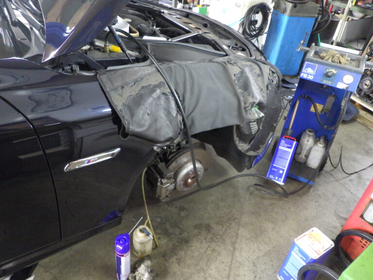 当店の車検整備においては、ブレーキキャリパーまわりの洗浄とブレーキパッドは、前後取り外して
