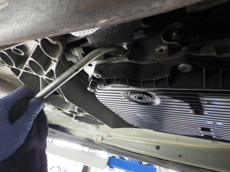 ATF交換も行いました。F系の車両は、オイルパン内にフィルターを内蔵しておりますのでオイルパンごとの