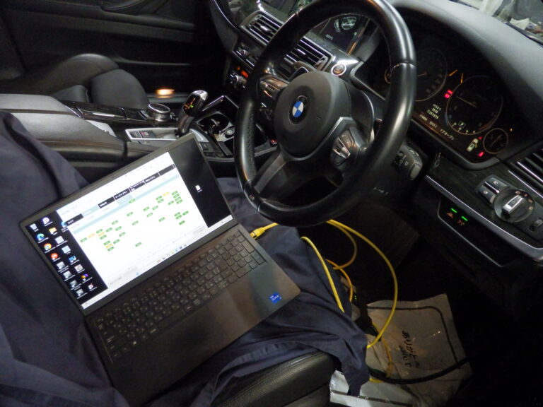 バッテリー診断を行いBMW専用テスターを車両に接続してコンピューター診断を行いエラーチェック