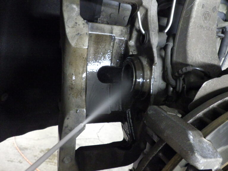 表面の洗浄、グリスアップをしてキャリパーシールからのフルードにじみを点検致します。