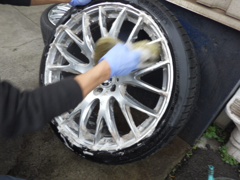 またハブ部分の錆取り。防錆処理を行いホイールは、裏も表も綺麗に洗います。
