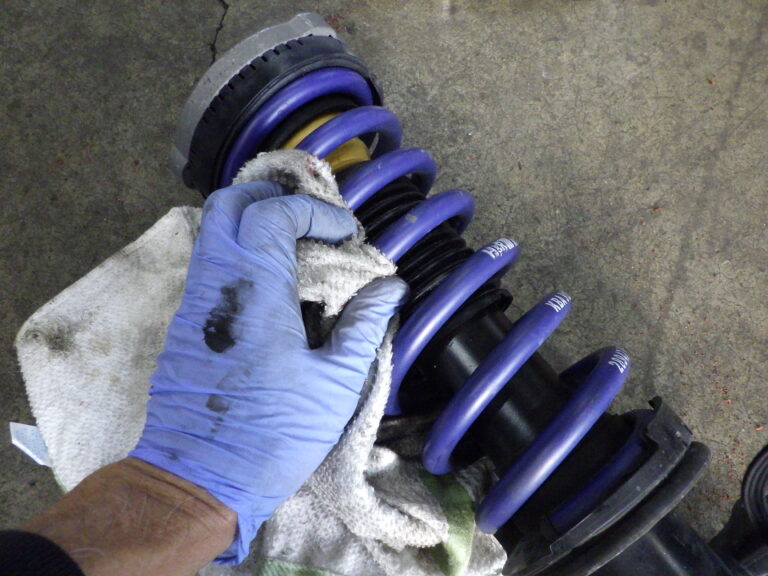 当店の車検整備においては、ブレーキキャリパーまわりの洗浄とブレーキパッドは、前後取り外して