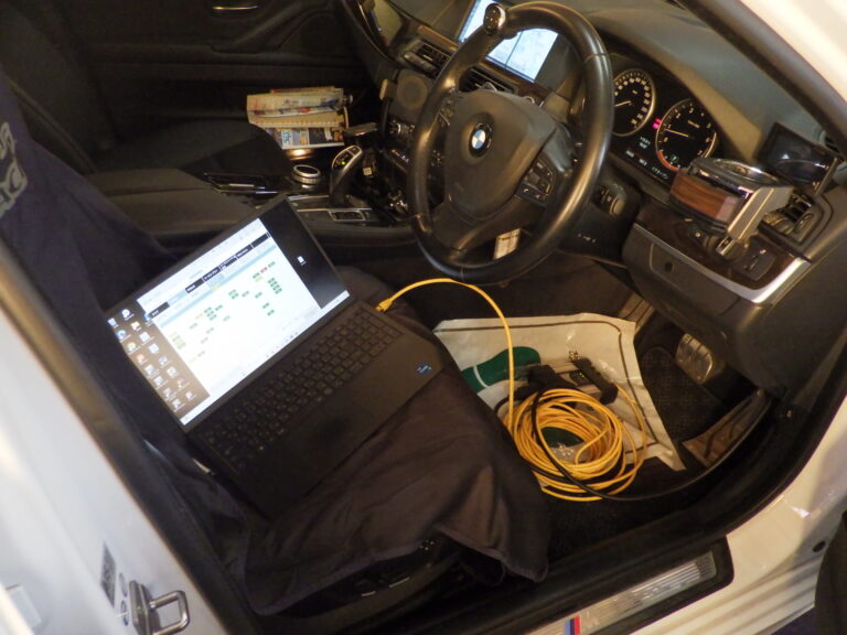 バッテリー診断を行いBMW専用テスターを車両に接続してコンピューター診断を行いエラーチェック