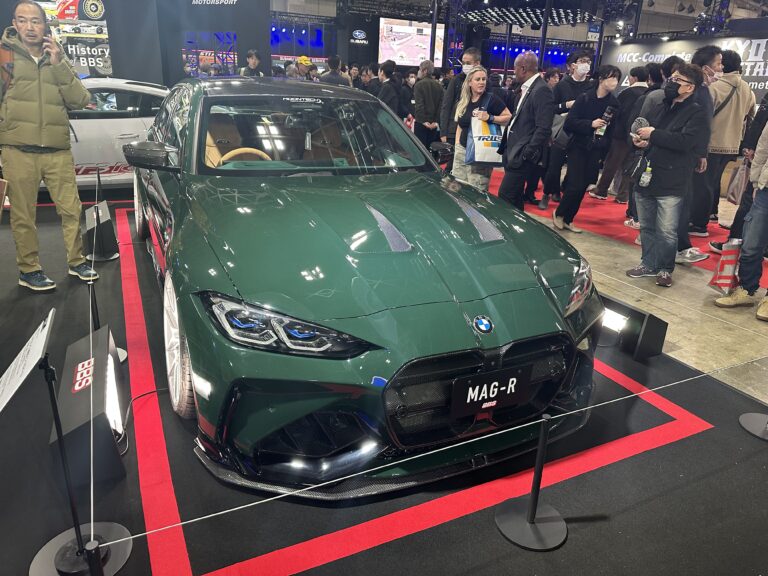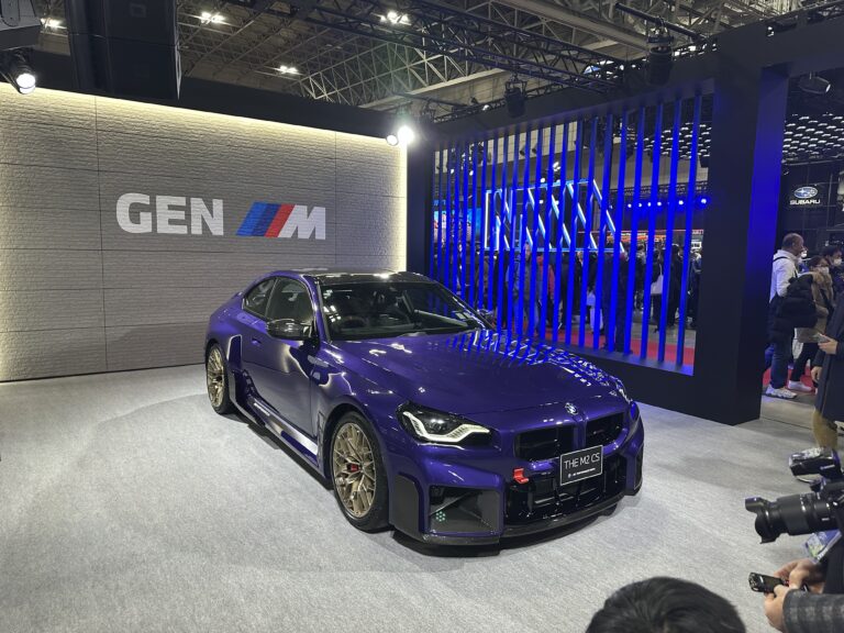 BMWのメーカーブースでは、あのG87CSの現車が展示されていました。人が多くて近くで見れず残念