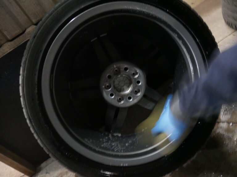 ホイールは、車両から外した際に裏も表も綺麗に洗います。車検毎に交換をお勧めしているブレーキフルードは、
