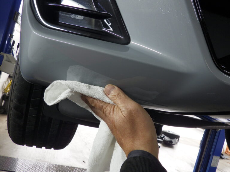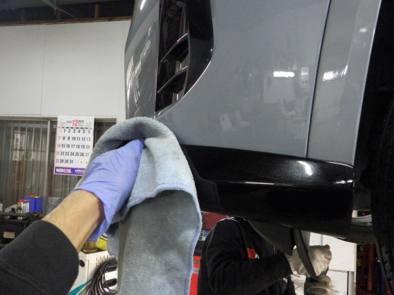 スポイラーが付いたら手垢落としで簡易コーティング剤を使用して仕上げを行います。
