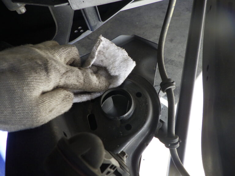 リアのアームのスプリング取り付け部分には、砂利がたまりやすいので全て除去してから