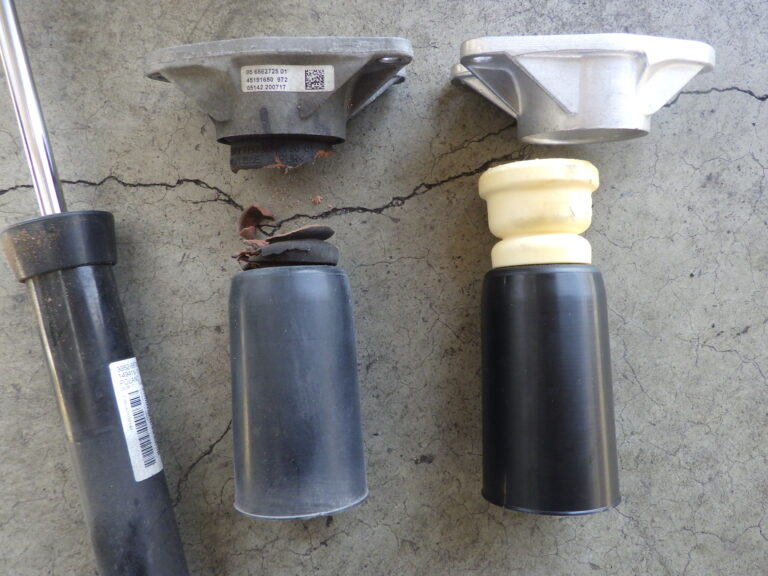 写真のとおりリアのバンプラバーは、ボロボロでした。アッパーマウントのベアリング部分には、グリスのにじみも