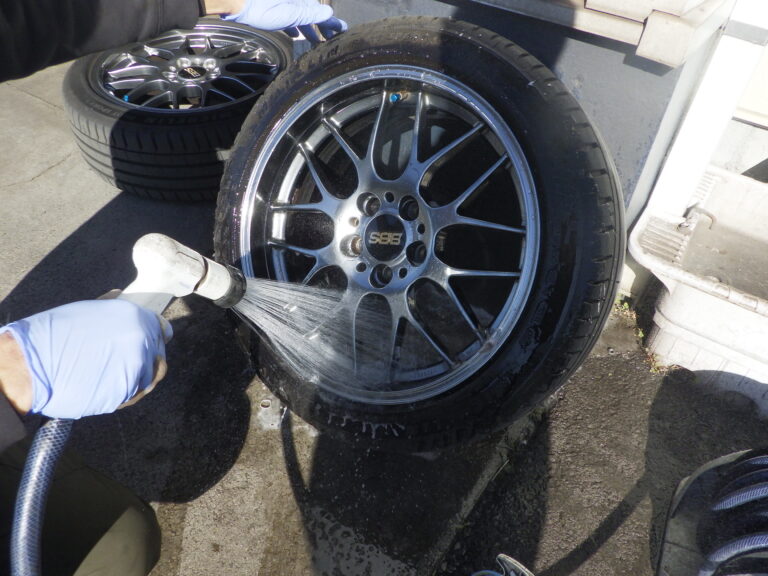 またハブ部分の錆取り、防錆処理を行いホイールは、裏も表も綺麗に洗います。