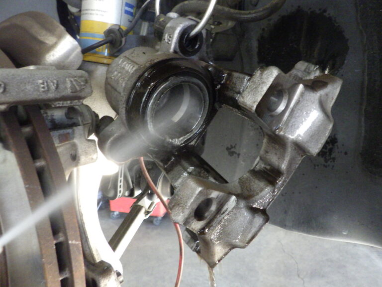 さて本題に入ります。当店の車検整備においては、ブレーキキャリパーの洗浄とキャリパーシールからの