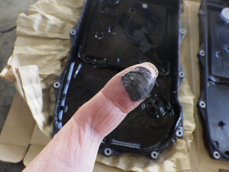 オイルパンごとの交換となります。外したオイルパン内の磁石には、汚れた鉄粉が多量に付いておりました。