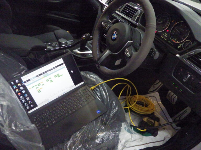 最後にBMW専用テスターを車両に接続してコンピューター診断を行いエラーチェック、消去、サービスインターバルリセット