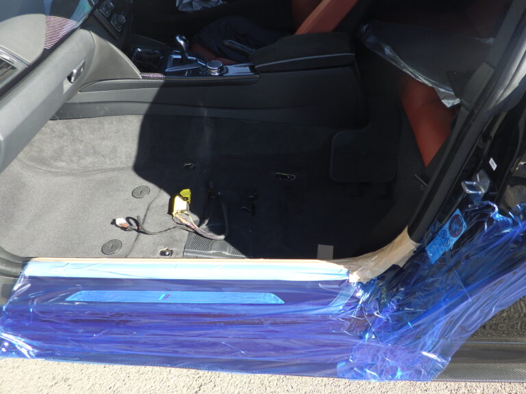 当店で取り付けの際には、純正シートを取り外す際にまわりに傷がつかないように養生をしてから作業を