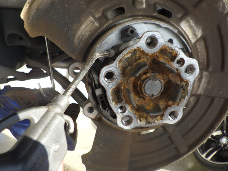当店の車検整備においては、リアブレーキローターは、取り外してサイドブレーキシューまわりの洗浄と