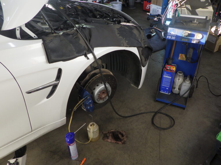 裏も表も綺麗に洗います。同時に車検毎に交換を推奨しておりますクーラントとブレーキフルードは、純正同等品使用にて