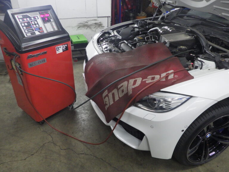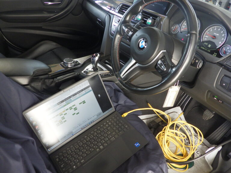 バッテリー診断を行いBMW専用テスターを車両に接続してコンピューター診断を行いエラーチェック