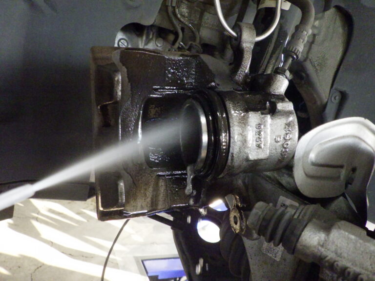 表面の洗浄、グリスアップをしてキャリパーシールからのフルードにじみを点検致します。