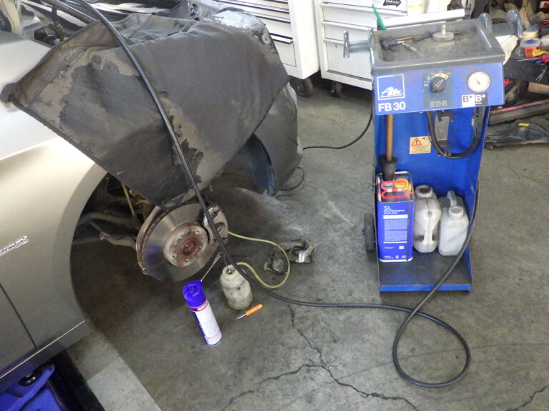 当店の車検整備においては、ブレーキキャリパーまわりの洗浄とブレーキパッドは、前後取り外して