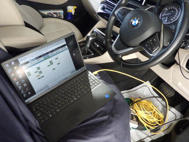 バッテリー診断を行いBMW専用テスターを車両に接続してコンピューター診断を行いエラーチェック