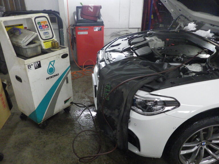 G31 523dのお客様にDPFクリーニングの施工を作業しました。DPFクリーニングは、DPF本体を取り外さずに
