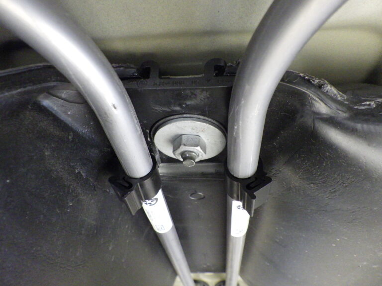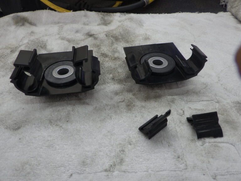 当たりカチャカチャと異音が出ます。このクランプが割れてサイドブレーキのワイヤーがプロペラシャフトに当たる事例が