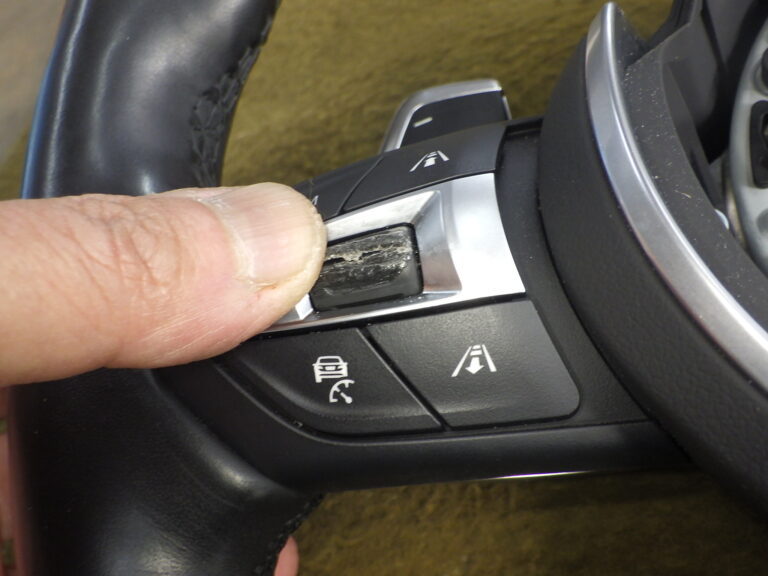 F31 320dのお客様のステアリングスイッチの交換を作業しました。スイッチの一部が欠けていて