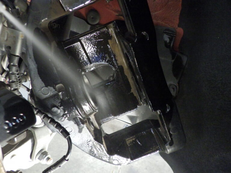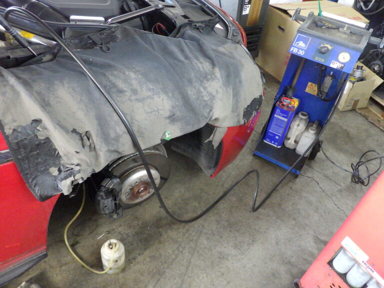当店の車検整備においては、ブレーキキャリパーまわりの洗浄とブレーキパッドは、前後取り外して