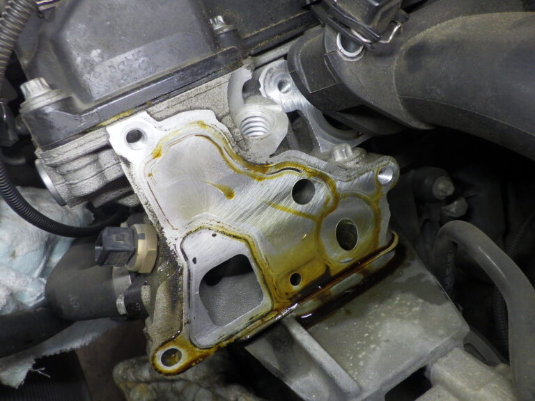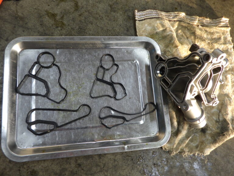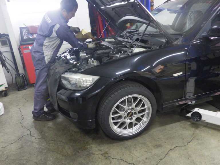E91 325iのお客様のエンジンオイルの漏れ修理を作業しました。N52エンジンの定番のエレメントブロックパッキン