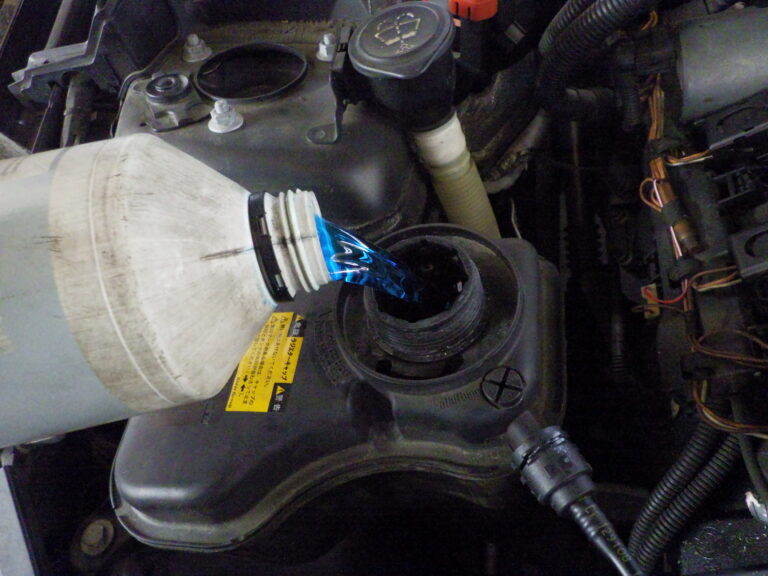 E90 320iのお客様のクーラント漏れ修理でクーラントホースの交換を作業しました。