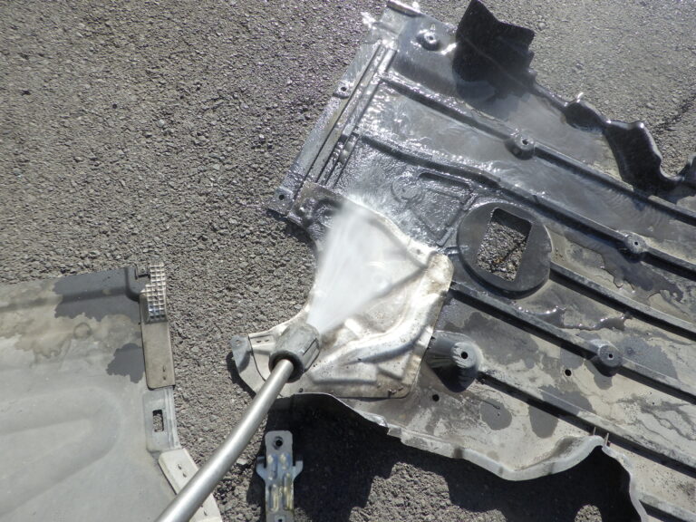 新品部品を手配して交換を作業してから漏れたクーラントの汚れを高圧洗浄機で綺麗にしてから