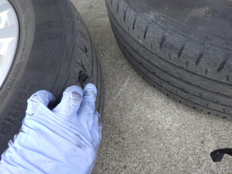 フロントタイヤのトレッド部分が2本とも表面剥離がありました・・・とても危険な状態なので