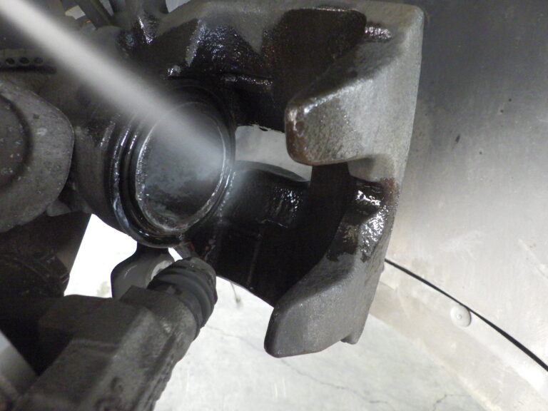 洗浄をしてブレーキパッドは、前後とも取り外して表面の洗浄とグリスアップを行いキャリパーシールからの