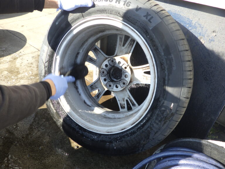 フルードにじみを点検してハブ部分の錆取り、防錆処理を行いホイールは、裏も表も綺麗に洗います