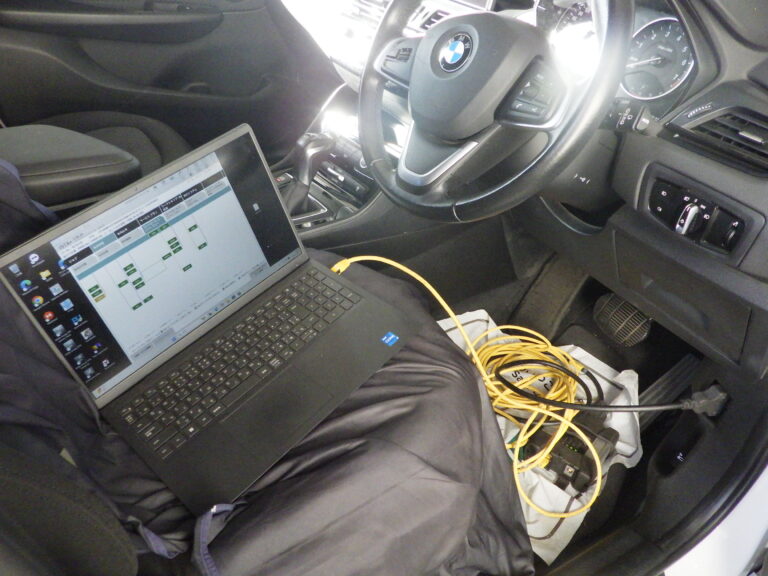 バッテリー診断を行いBMW専用テスターを車両に接続してコンピューター診断を行いエラーチェック