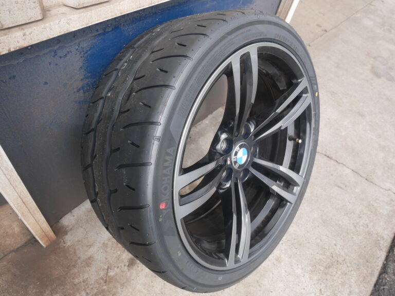 フロントタイヤ1本に釘が刺さっていたので1本を新品にアドバンネオバAD09にて交換作業を行いました