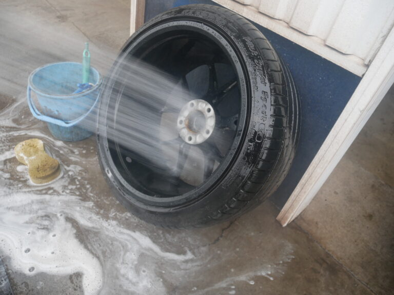 同時にハブ部分の錆取り、防錆処理を行いホイールは、裏も表も綺麗に洗います。タイヤの空気圧点検も行っております