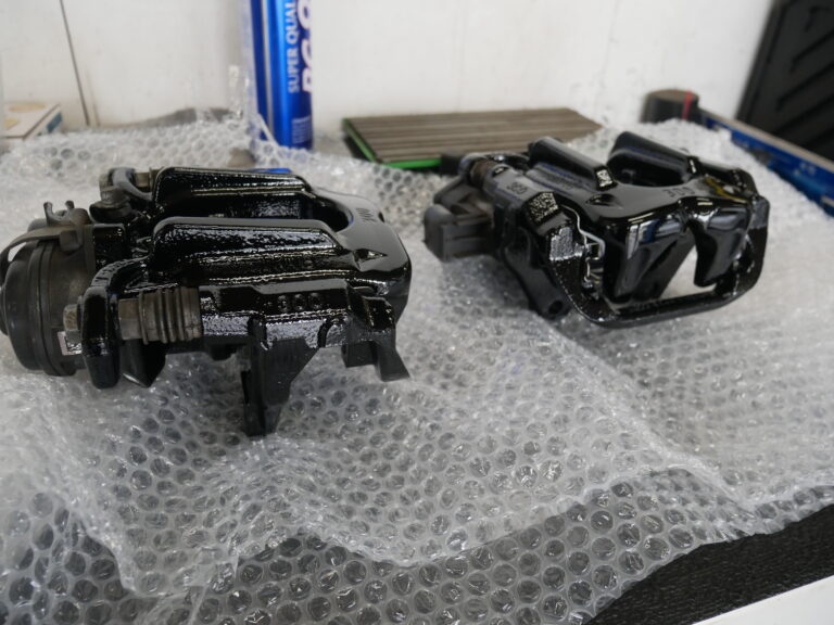 出して塗装して取り付けしました。パッドは、フロントに合わせてディクセルタイプMに交換をしてブレーキフルードの