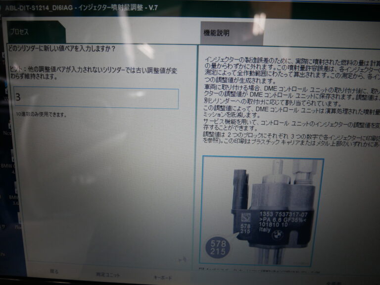 インジェクターを新品取り寄せして1本のみ交換を行いました。BMW専用テスターの注意書きには、