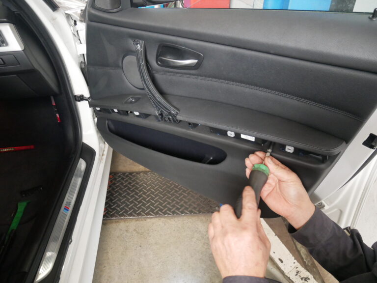 同時にE90系の車両で多いドアハンドルベトベト事例の修理でドアハンドルの交換を行いました!