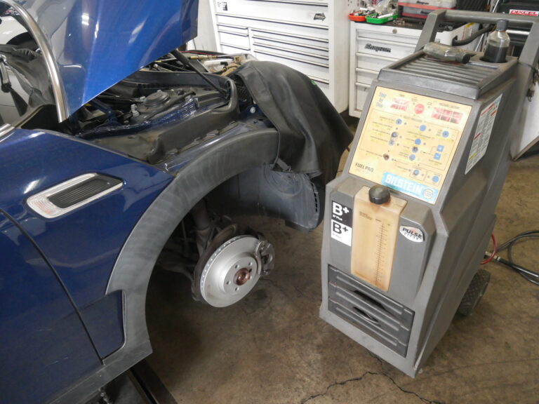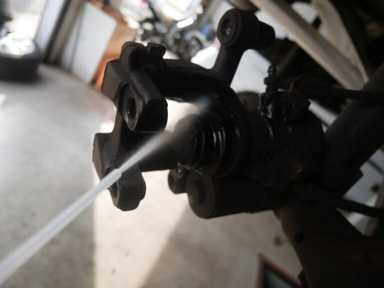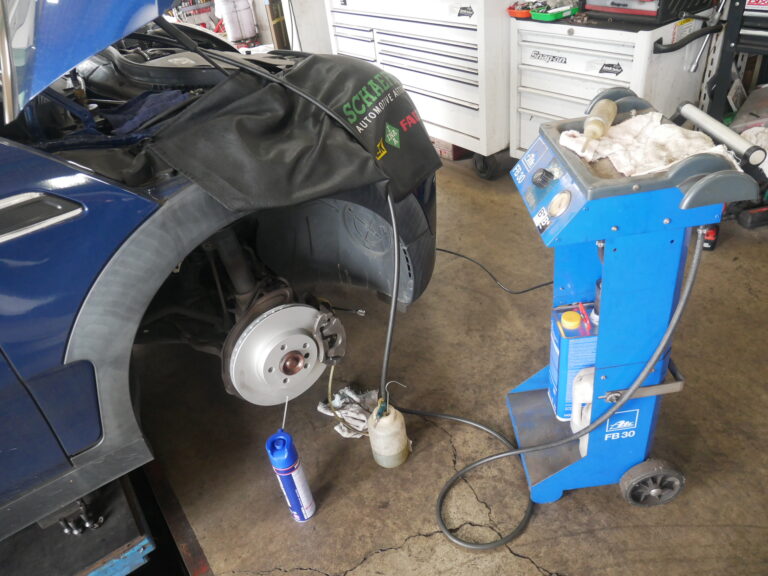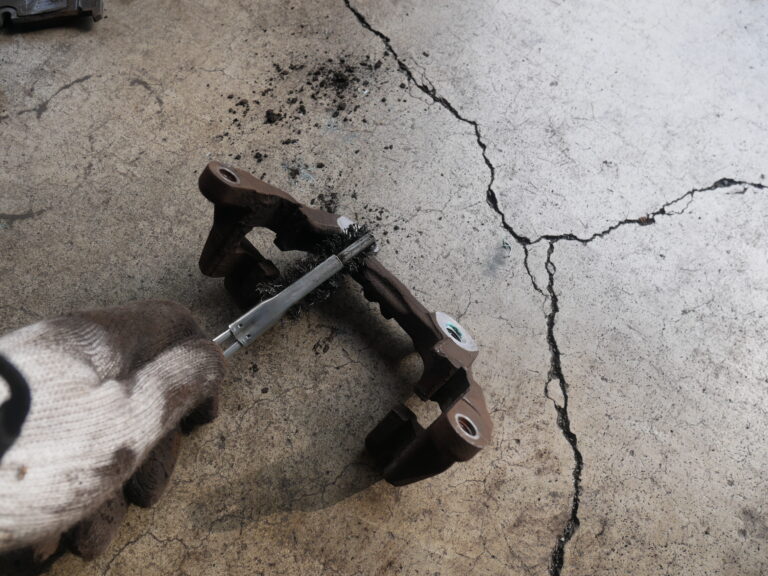 行いました。当店で車検整備の際には、ブレーキキャリパーまわりの洗浄とキャリパーシールからのフルード滲みを