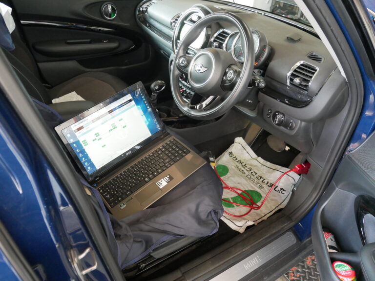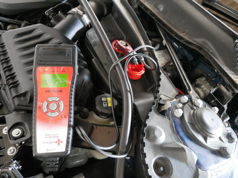 バッテリー診断を行いBMW専用テスター使用にてコンピューター診断を行いエラーチェック、消去をして