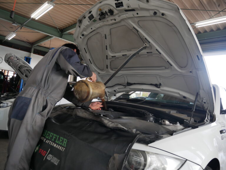 裏も表も綺麗に洗います。車検毎に交換をお勧めしておりますブレーキフルードは、純正同等品のDOT4使用にて交換を行いクーラント交換は、